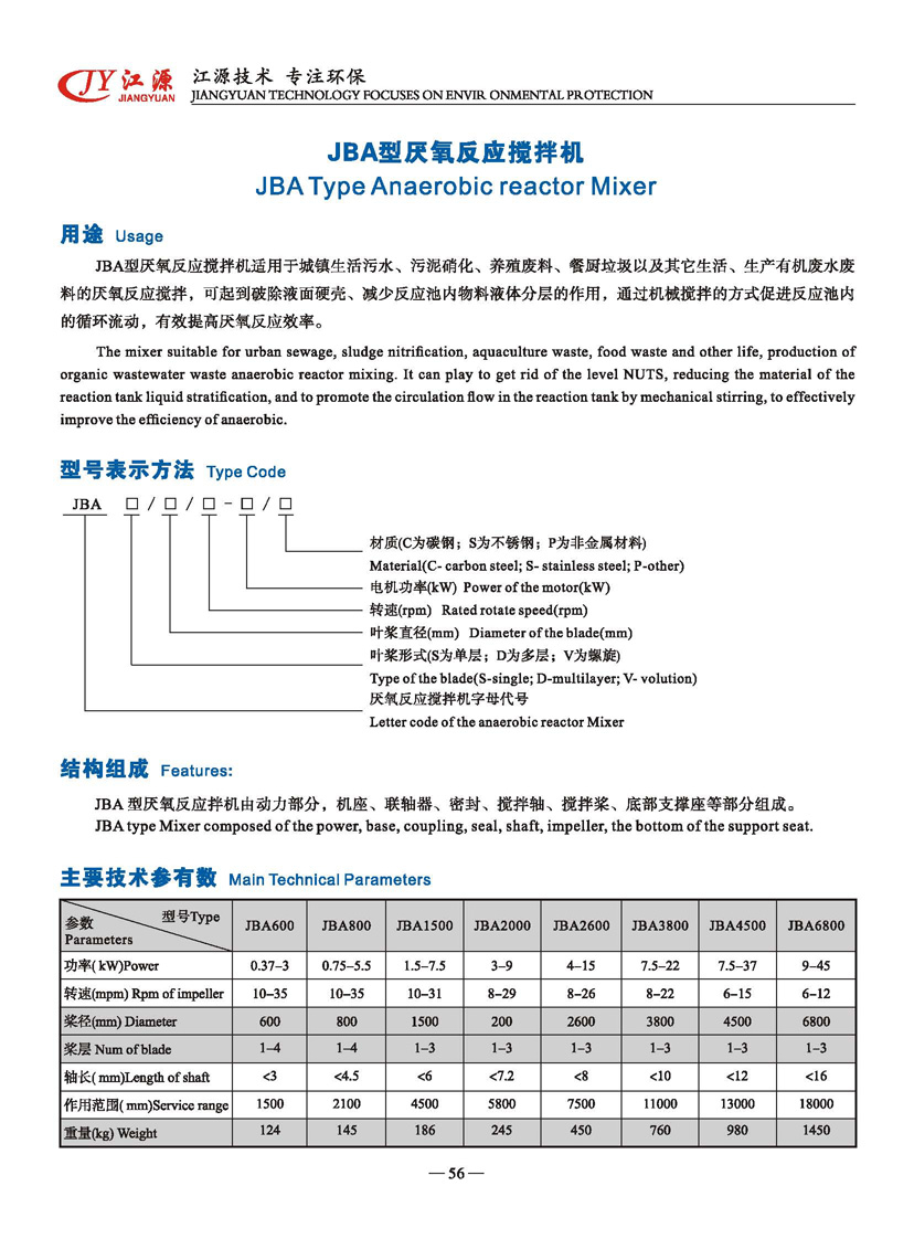 JBA型厭氧反應(yīng)攪拌機