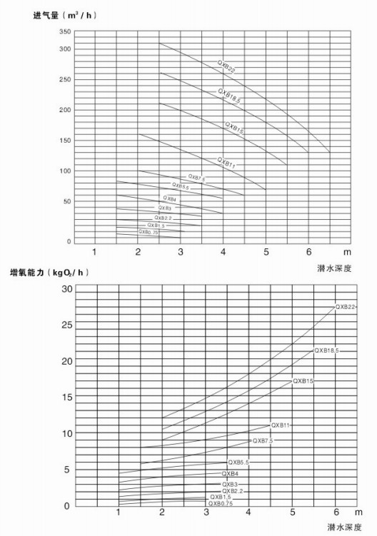 QXB型潛水離心式曝氣機(jī)采用電機(jī)和葉輪直接傳動,利用葉輪旋轉(zhuǎn)所產(chǎn)生的離心力排開周圍水形成低壓區(qū)吸入水流同時,在葉輪進(jìn)口處制造真空而吸入空氣,在混氣室中氣與水充分混合形成均勻的氣水混合液,在離心力作用下快速排出。