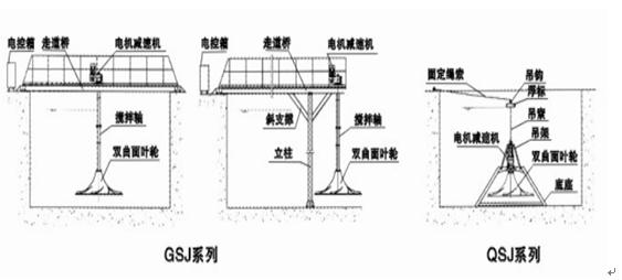 QSJ、GSJ型系列"雙曲面攪拌機"是我公司的新產品。它運用在環保、化工、能源、輕工等行業需要對液體進行固、液、氣攪拌混合的場合,尤其適用在污水處理工作中的混凝池、調節池、厭氧池、硝化和反硝化池。