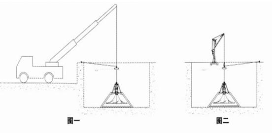 圖一是通過長臂汽車吊直接將攪拌機吊入指定位置;
